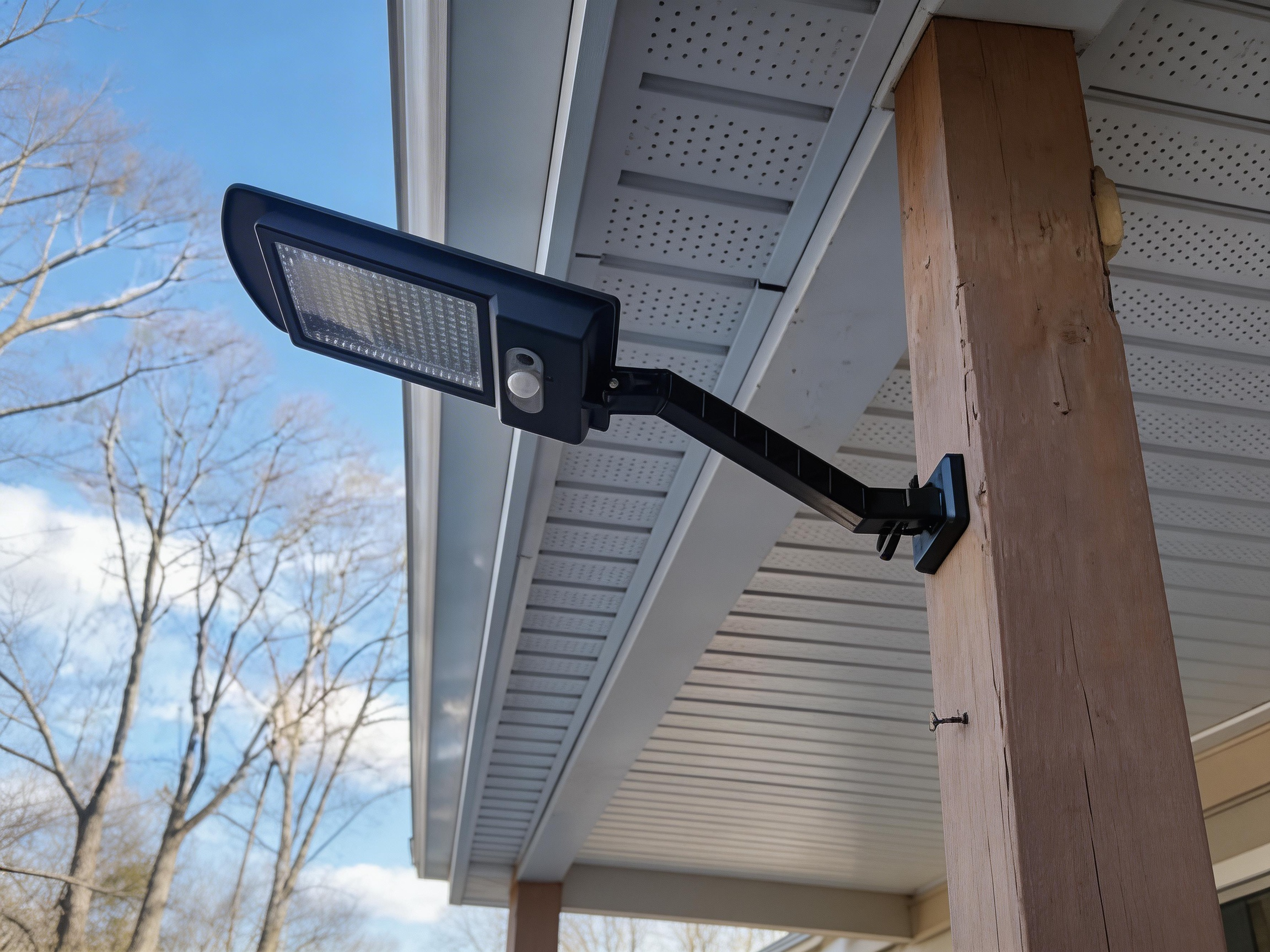 It is so flexible that you can change the angle easily, it can be mounted a few inches away from a building so that the solar panel is clear of rain gutters and overhangs and get better lighting