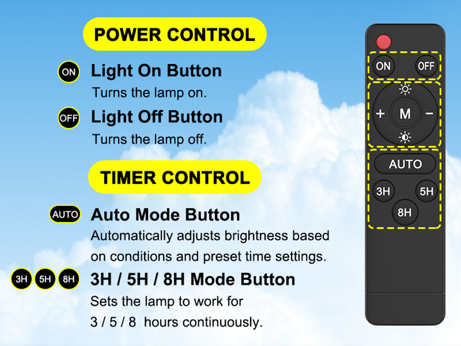 Integrated intelligent control chips optimize energy usage by adjusting output power as the battery capacity decreases, extending lighting time. The built-in power display lets you monitor remaining charge, while the remote control offers customization of brightness and operation hours to suit your preferences.